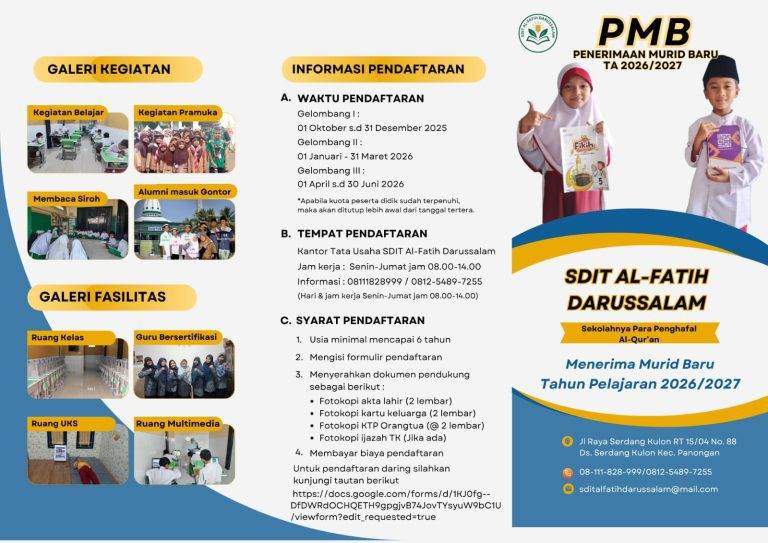 Yayasan Al Fatih Darussalam didirikan untuk memberikan pendidikan Islam terpadu yang unggul dalam ilmu dan akhlak.